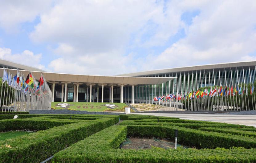 2025年10月5日拍摄的进博会举办场所——国家会展中心(上海)外景。(新华社记者 方喆/摄)