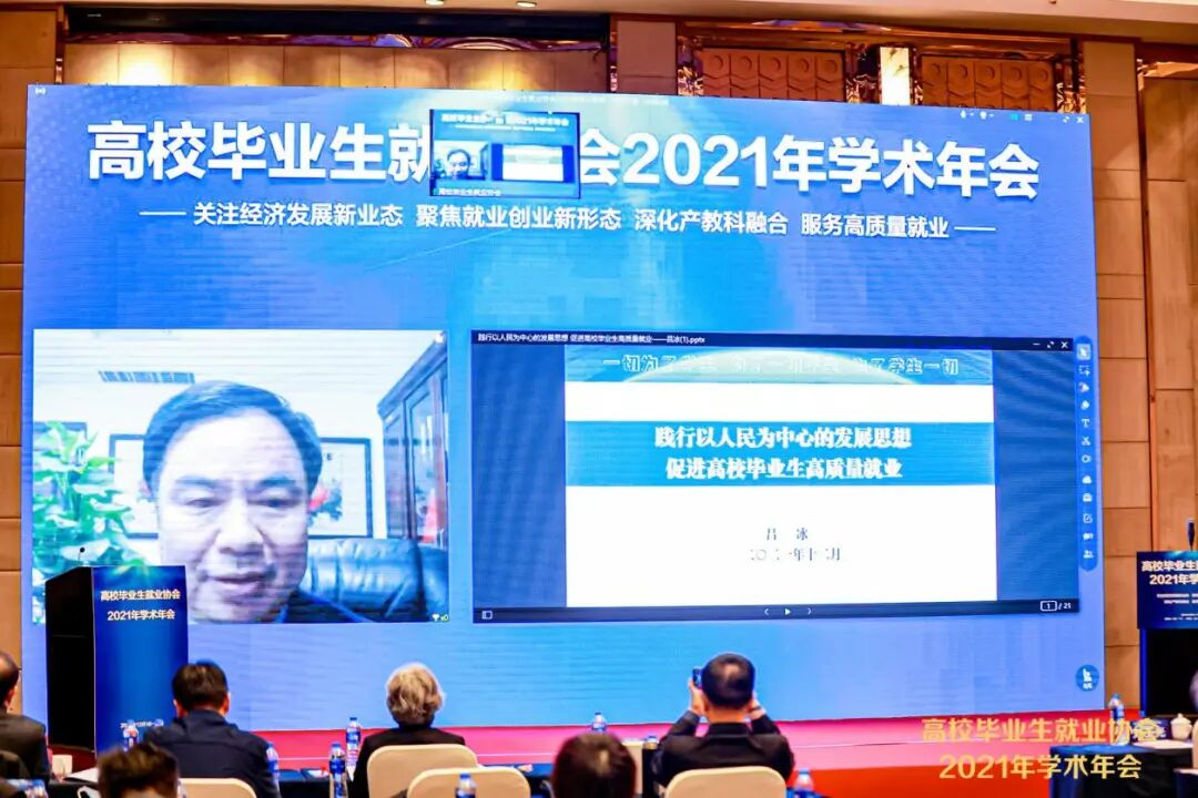 12月16日-19日,高校毕业生就业协会(以下简称“协会”)通过线上线下相结合的方式举行2021年学术年会。年会深入学习贯彻习近平新时代中国特色社会主义思想和党的十九届六中全会精神,落实《“十四五”就业促进规划》《关于进一步支持大学生创新创业的指导意见》《关于做好2022届全国普通高校业生就业创业工作的通知》等文件要求,以“关注经济发展新业态,聚焦就业创业新形态,深化产教科融合,服务高质量就业”为主题,深入交流研讨高校毕业生就业创业的新观点、新思路、新举措,会议分设北京、广州两个主会场和上海、郑州、沈阳、哈尔滨四个分会场。共有来自政府部门和有关机构、高校、企业等100余名领导、专家和相关代表发言交流,660余名社会各界人士参加大会。