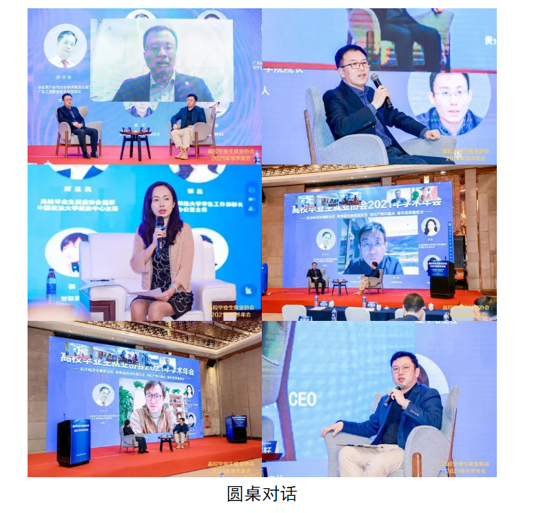 上述报告结束后,围绕高校毕业生就业工作的典型经验,上海交通大学就业中心主任顾希垚,中国政法大学就业中心主任解廷民,广东技术师范大学学工部部长、招生就业办公室主任郭磊,贵州盛华职业学院副校长盛华,智联招聘CEO郭盛,荣耀校招负责人冯正轩进行了圆桌对话与交流。